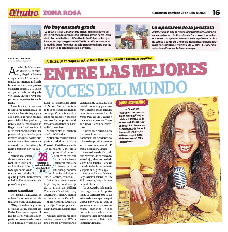 La cartegenera Ana Karo Borré nominada a famosos premios.